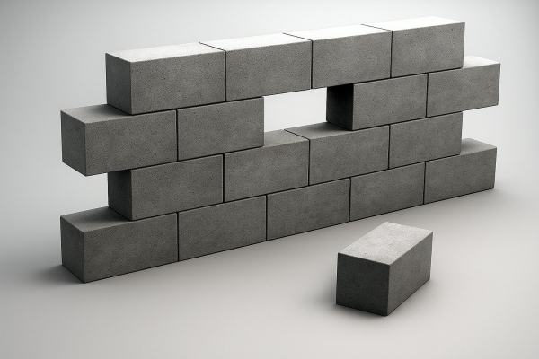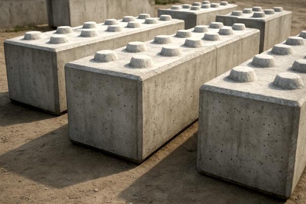 Lego Interlocking Concrete Blocks are large, heavy-duty building blocks made of concrete that fit together like toy LEGO bricks.